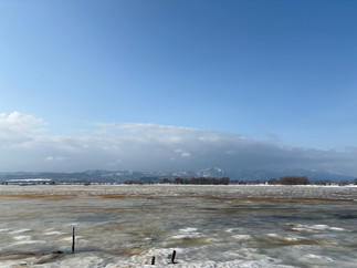 マガンたちは、宮島沼の氷がとけるまで、雪解けの進んでいる他の水辺でそれぞれねぐらをとっています。